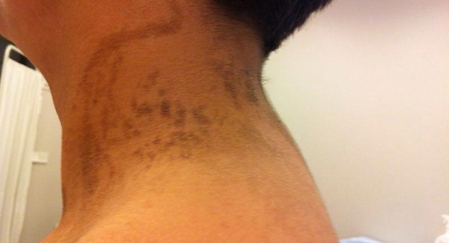 Linear and whorled nevoid hypermelanosis - это расстройство пигментации, характеризующееся макулезной гиперпигментацией по линиям Блашко. При дифференциальной диагностике этого расстройства пигментации может использоваться дерматоскопия. Дифферециальный диагноз включал в себя синдром недержания пигмента, линейный эпидермальный невус, гипомеланоз Ито и синдром Гольтца.